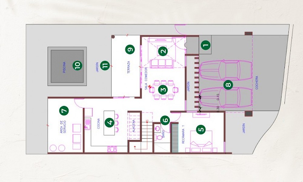 - Estacionamiento no techado Capacidad 2 vehículos techado
