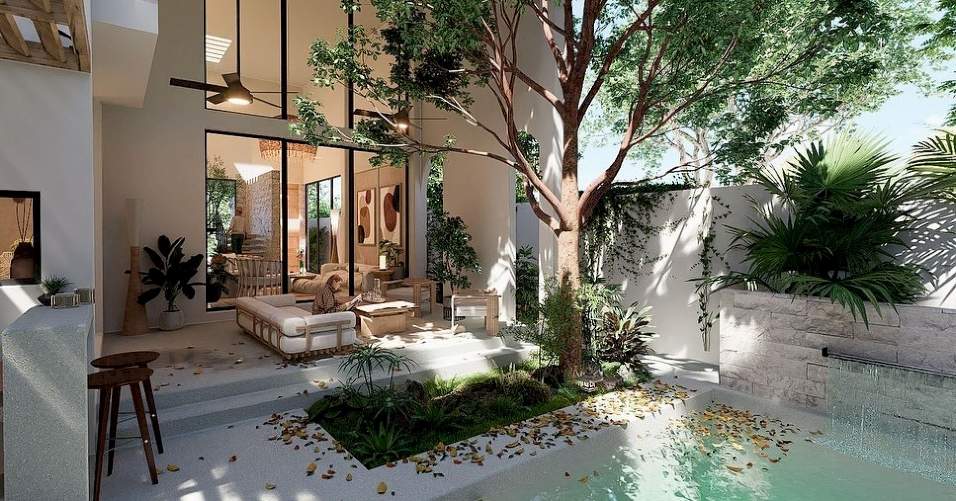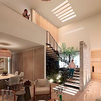 El modelo Ka´an se caracteriza por tener una distribución en dos plantas con cuatro amplias habitaciones y una distintiva terraza a doble altura, además de su estilo mediterráneo contemporáneo en el cual se mezclan detalles de materiales naturales como mármol, piedra galarza, chukúm y cuarzo que provocarán un juego de texturas y tonos neutros muy adecuados al clima cálido yucateco.