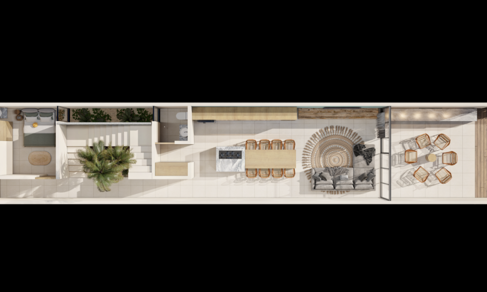 Estas villas se caracterizan por estar distribuídas en dos niveles con cuatro habitaciones, una de ellas en planta baja para mayor comodidad.