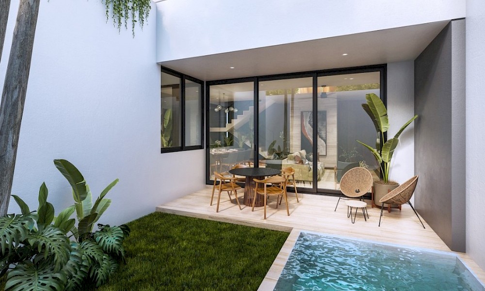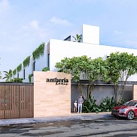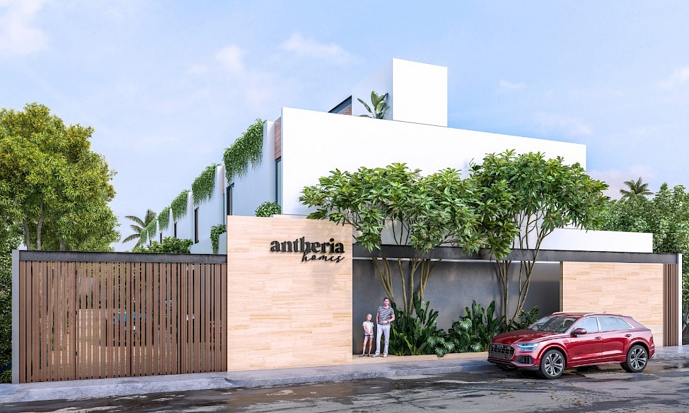 Preventa de villas en Antheria en una de las mejores zonas del norte de Mérida, Temozón. El desarrollo contará con seguridad a través de portón eléctrico, interfón y acceso peatonal con apertura remota vía celular, además el complejo estará conformado de 6 exclusivas villas.