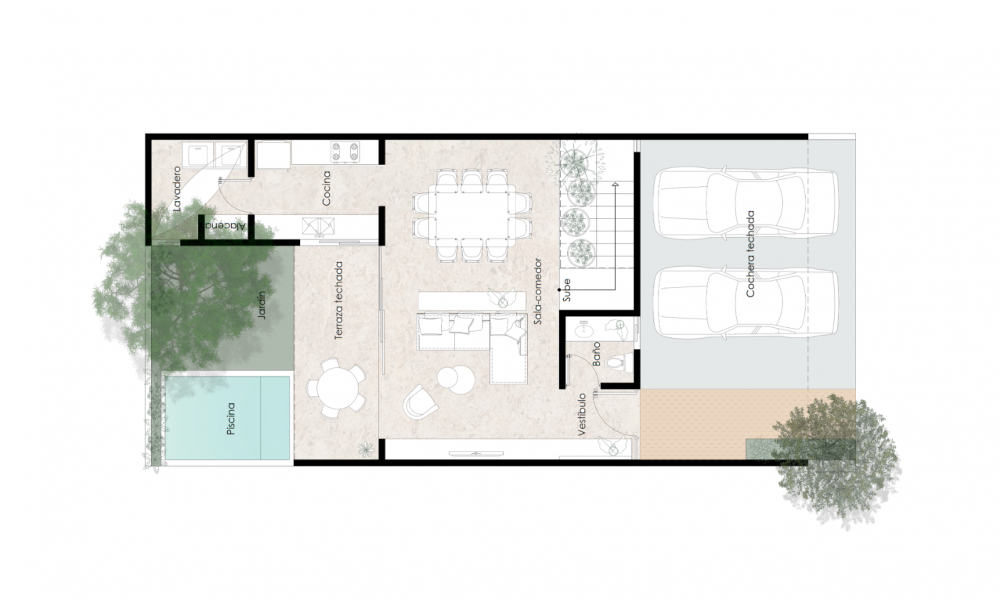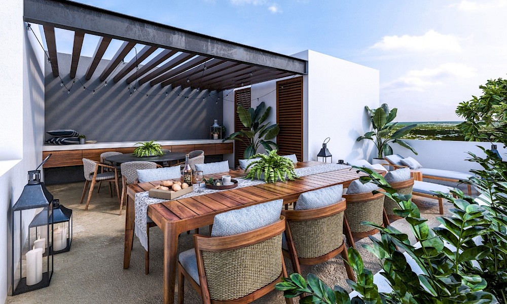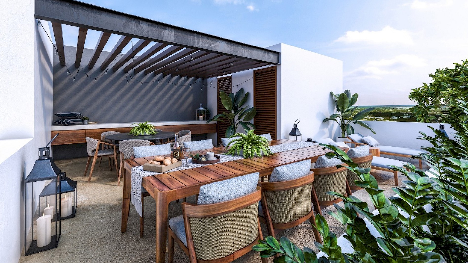 La propiedad contará con una armoniosa distribución con tres amplias habitaciones en planta alta y un rooftop con terraza para tener las mejores vistas de los atardeceres.