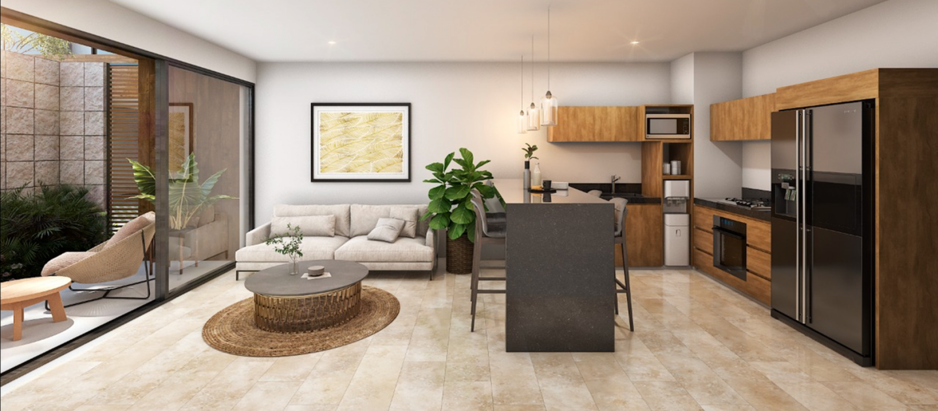 Preventa de departamentos en Milea, una privada que cuenta con seguridad y acceso controlado, localizada en la Zona Country, a solo unos pasos de la Universidad Anáhuac Mayab y la carretera Mérida-Progreso, además se encuentra a solo 10 minutos de centros comerciales, restaurantes y todos los servicios.