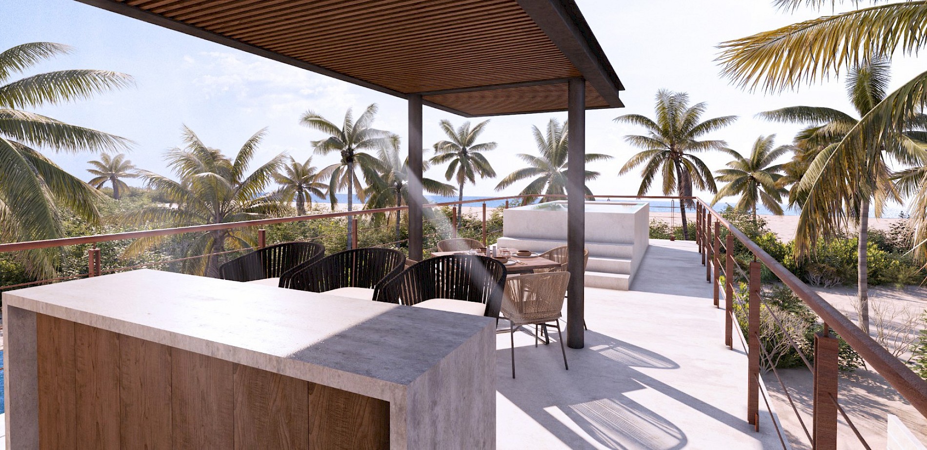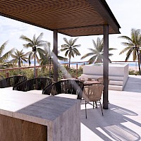 La villa modelo B se caracteriza por contar con 3 amplias habitaciones, todas con clóset vestidor y una habitación en planta baja, así como por tener dos piscinas privadas, una en planta baja y otra en el roof top.