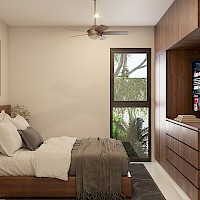 Este modelo se caracteriza por contar con dos amplias habitaciones y un área para jardín.