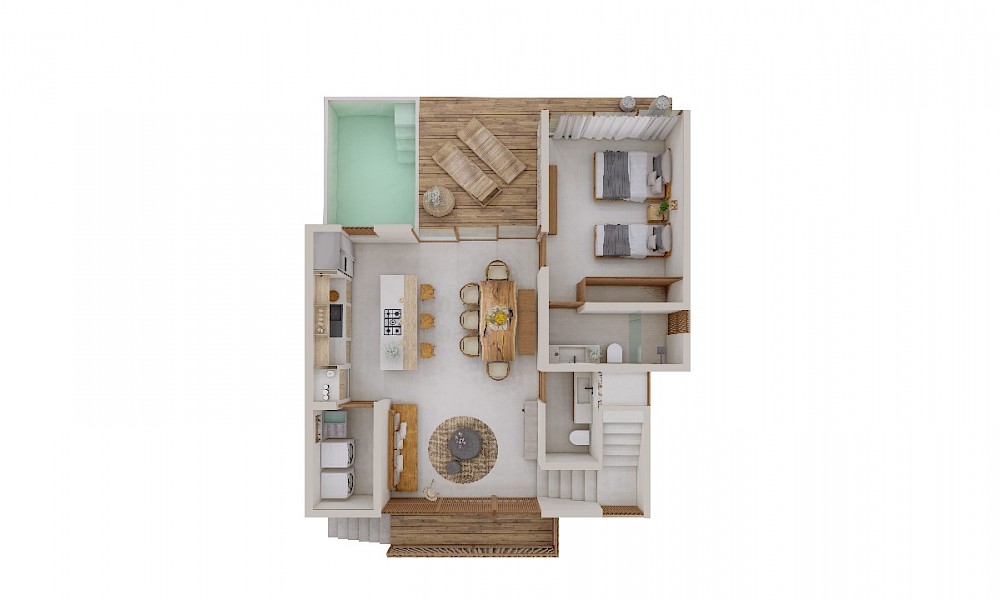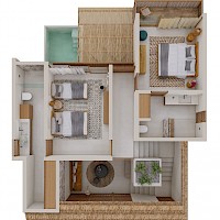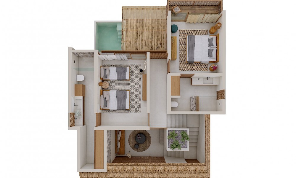 El desarrollo constará de 11 departamentos y 9 villas de lujo. Este modelo se caracteriza por contar con 3 habitaciones, 1 en planta baja, alberca privada, espacios abiertos, acabos de alta calidad, equipado con modernas comodidades y decorado con materiales locales.