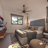 El modelo Manzanares se caracteriza por contar con dos amplias habitaciones en planta alta. También cuenta con la posibilidad de ampliación para agregar una tercera y cuarta habitación en planta alta, así como una piscina, cuarto de servicio y cochera techada con costo adicional.