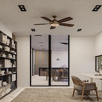 El modelo F cuenta con 3 amplias habitaciones y un estudio que puede ser una recámara ya que cuenta con baño completo y se encuentra en el primer nivel.