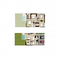 El modelo C1, se caracteriza por su distribución armoniosa en dos niveles, con una habitación en planta baja y un amplio terreno en la parte trasera.