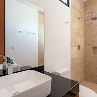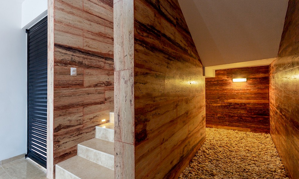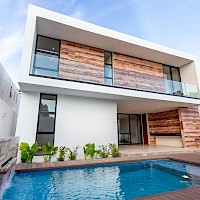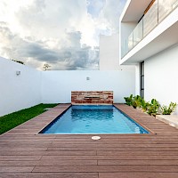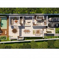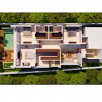 La propiedad se caracteriza por contar con una habitación en planta baja, una sala a doble altura y una terraza techada con área de bar con una hermosa vista de la piscina con cascada.