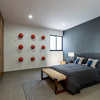 El modelo B se caracteriza por contar con una distribución de sus espacios en dos niveles, con una habitación en planta baja y la recámara principal en planta alta.