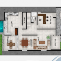 Esta propiedad se caracteriza por tener 3 habitaciones completas en planta alta, además de un estudio en planta baja que podría servir como cuarta habitación en caso de ser necesario.