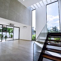 Esta propiedad se caracteriza por tener un diseño moderno y tener cuatro habitaciones en planta alta, más un estudio con baño completo en planta baja, ideal para adecuar como habitación de visitas u oficina.