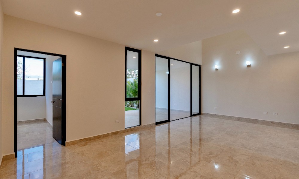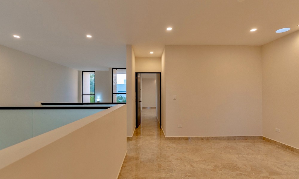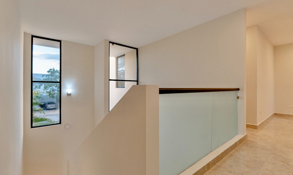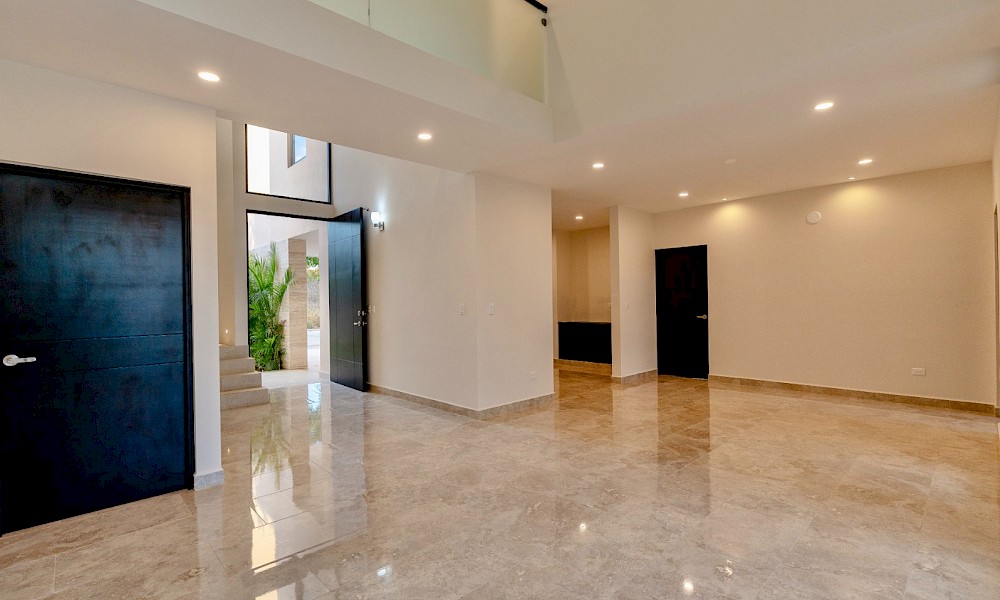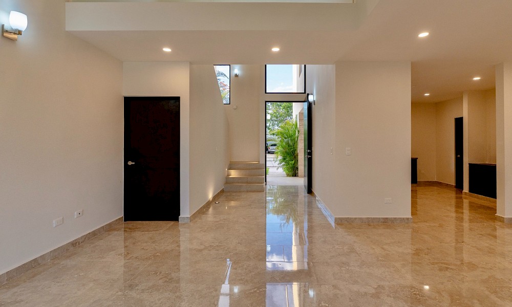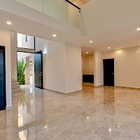 Esta propiedad se caracteriza por sus amplios espacios, un recibidor y sala a doble altura, tres habitaciones en planta alta y un estudio con baño en el primer nivel como opción a una cuarta recámara.
