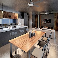 - Cocina con barra desayunadora