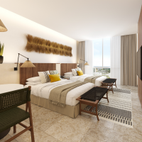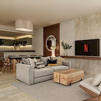 El modelo double se caracteriza por tener dos habitaciones con baño cada una, además de un medio baño de visitas. En este prototipo la segunda habitación tiene un sistema de lock-off.