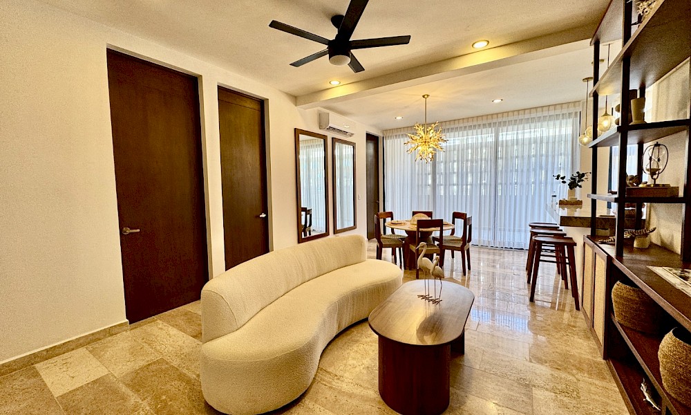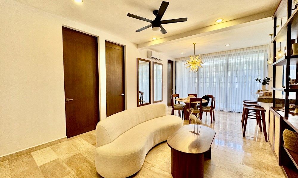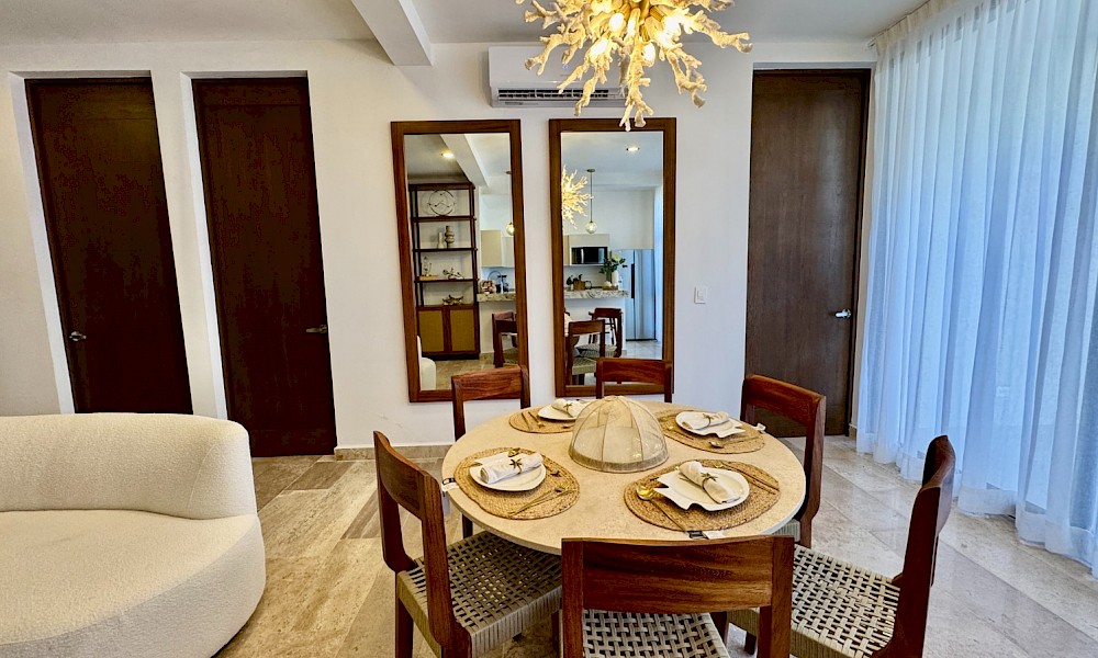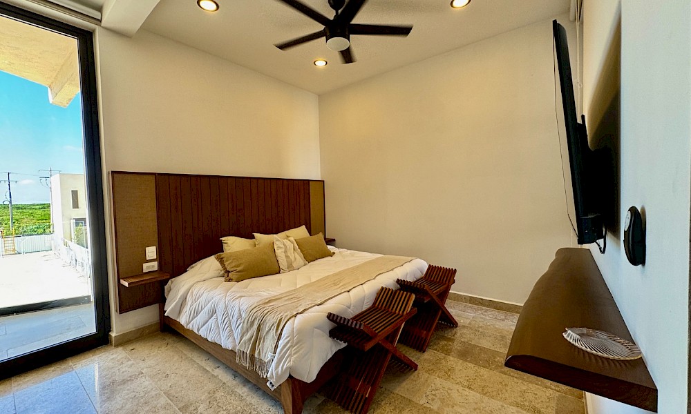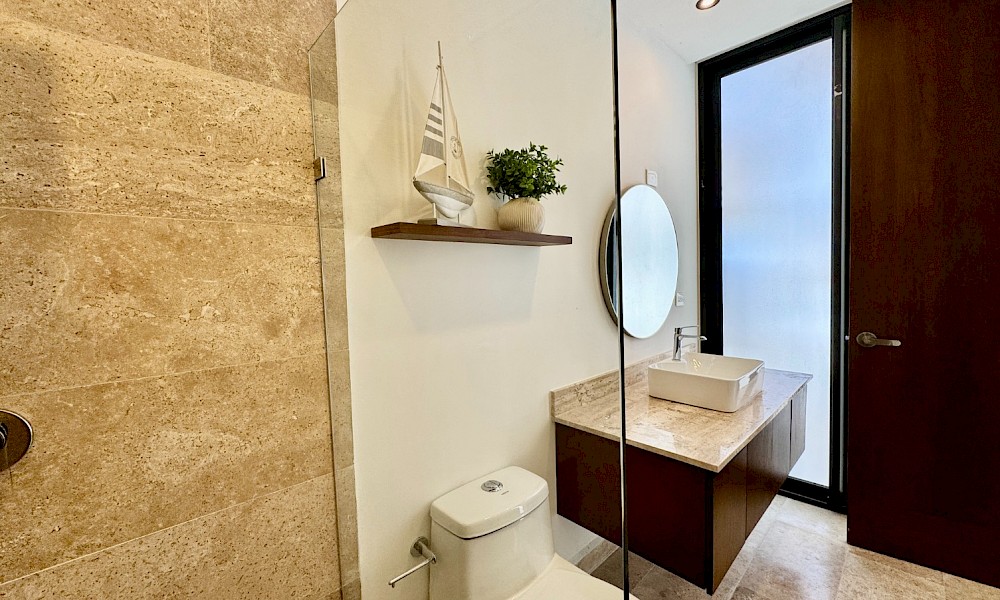 El modelo 24 se caracteriza por su vista franca hacia el majestuoso mar de Telchac, cuenta con 3 habitaciones, además de un cuarto de servicio con baño propio.