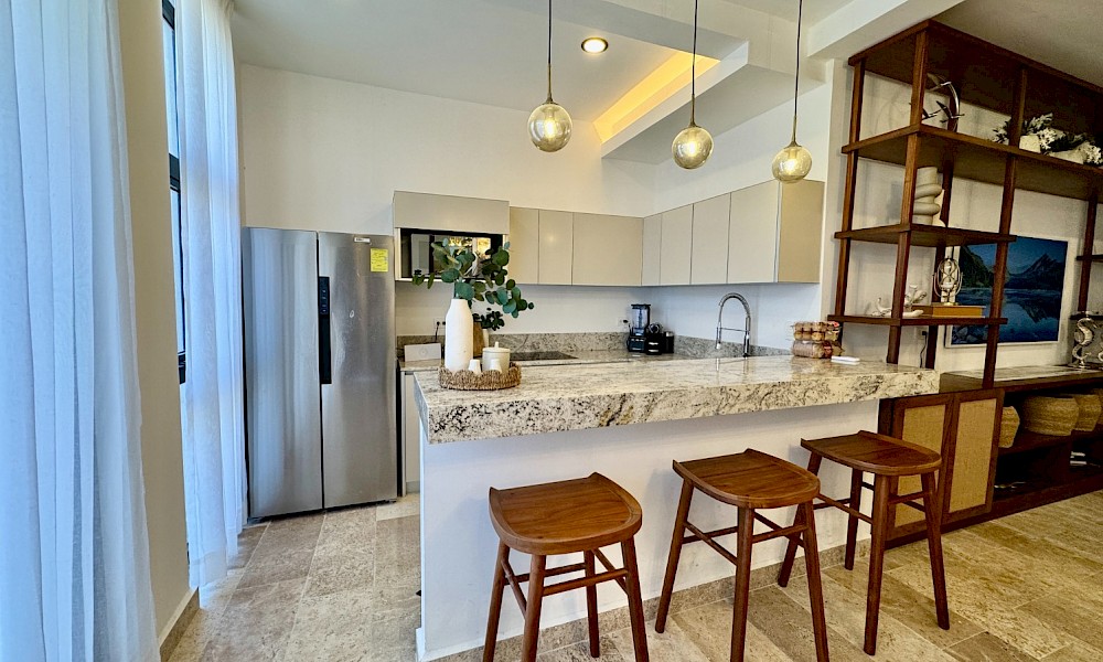 - Cocina con barra desayunadora