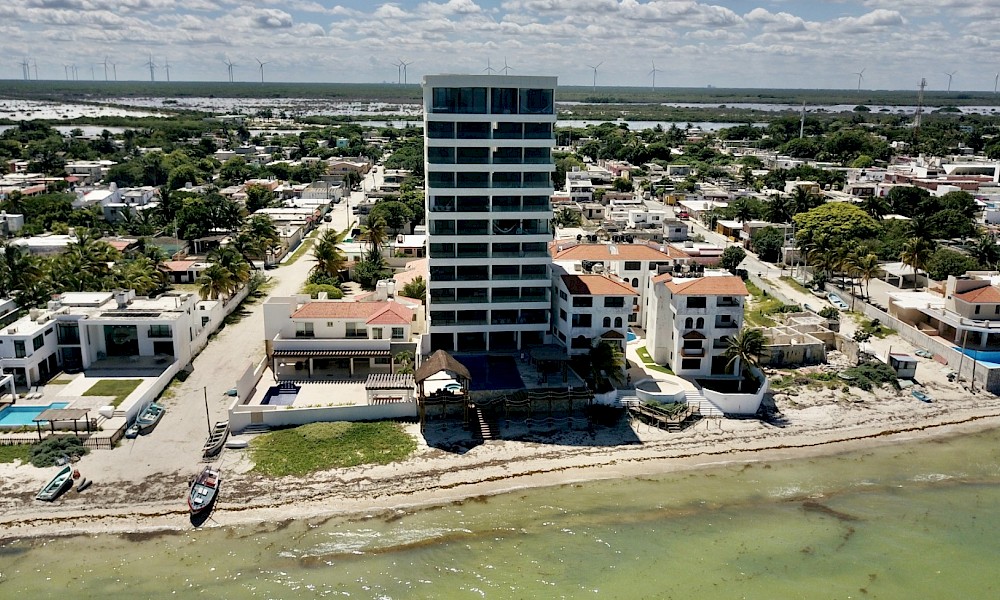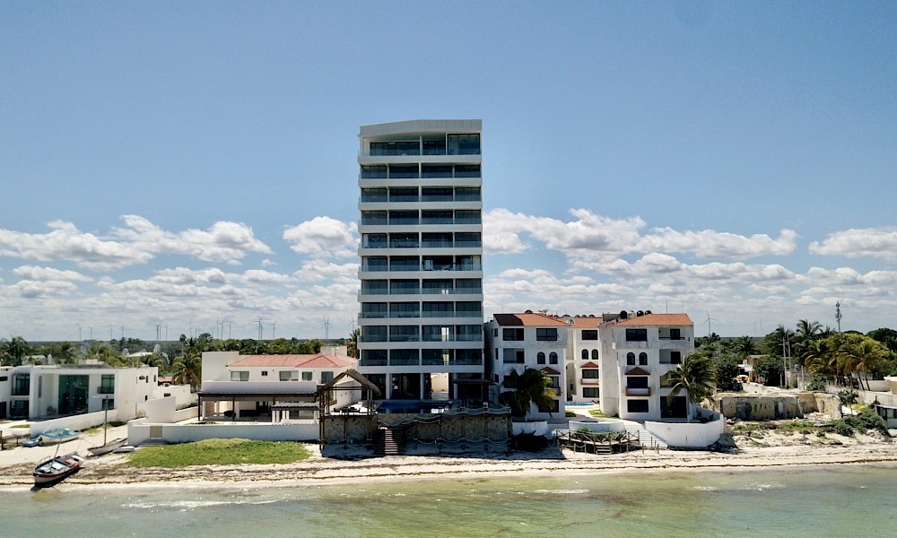 Departamento en Puerta del Mar, ubicado en Chicxulub puerto que en su entorno inmediato nos brinda todos los servicios necesarios y a escasos 25 minutos nos encontraremos con la ciudad de Mérida. El proyecto está conformado por 18 departamentos en total, todos frente al mar.