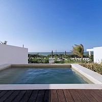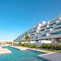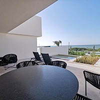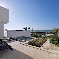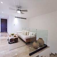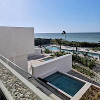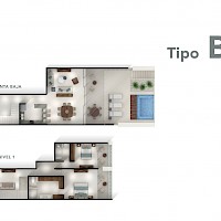 El modelo B se caracteriza por encontrarse en el primer nivel de la torre, con tres amplias habitaciones en planta alta, dos de ellas con balcón con vistas hermosas de la playa.