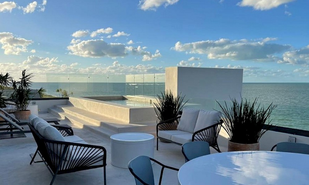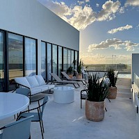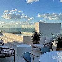 El modelo Bis se caracteriza por encontrarse en el cuarto nivel de la torre, con una habitación y una extensa de terraza con una piscina de gran tamaño.