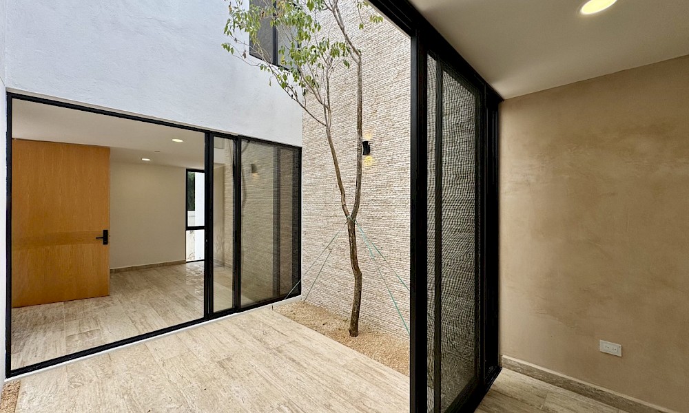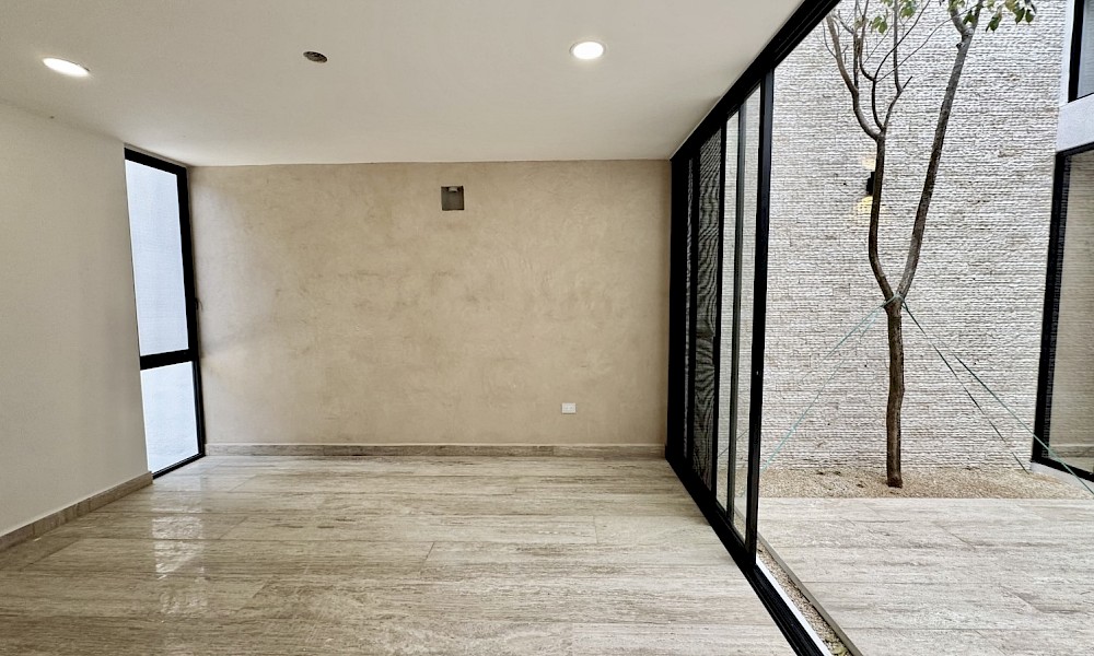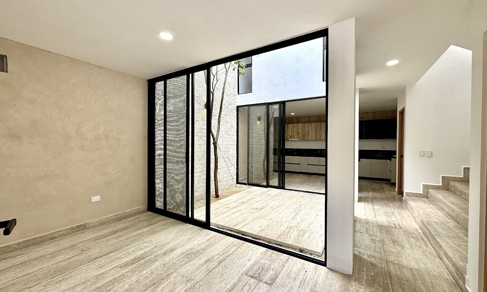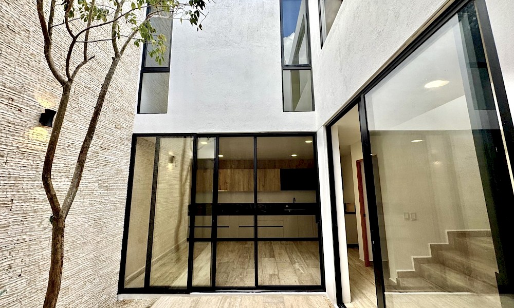 Casa H2 se caracteriza por su armoniosa distribución, en donde el patio central, se vuelve el corazón del proyecto, brindando mayor iluminación y ventilación en toda la casa. Este modelo cuenta con una habitación en planta baja.