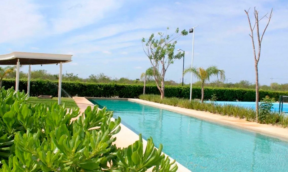 Residencia en Privada Yaaxlum, un desarrollo conformado por 404 lotes residenciales, ubicado a 20 minutos de la ciudad de Mérida, en un entorno que cuenta con seguridad privadad y amenidades dentro del condominio.