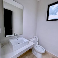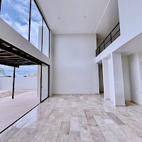 Esta opción se caracteriza por tener una amplio jardín, además de una habitación cómoda en planta baja y una espectacular doble altura en el área de sala-comedor.