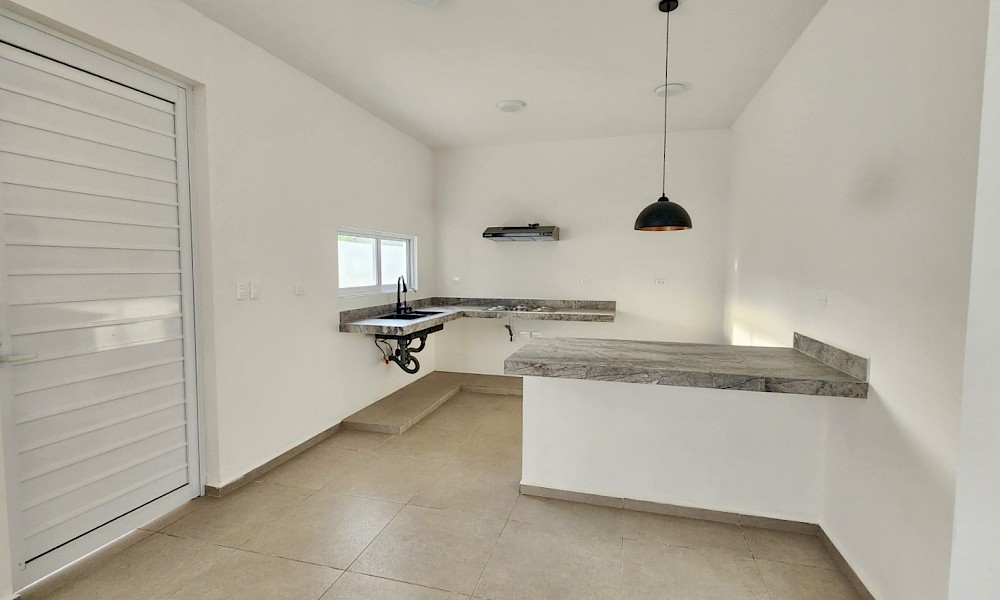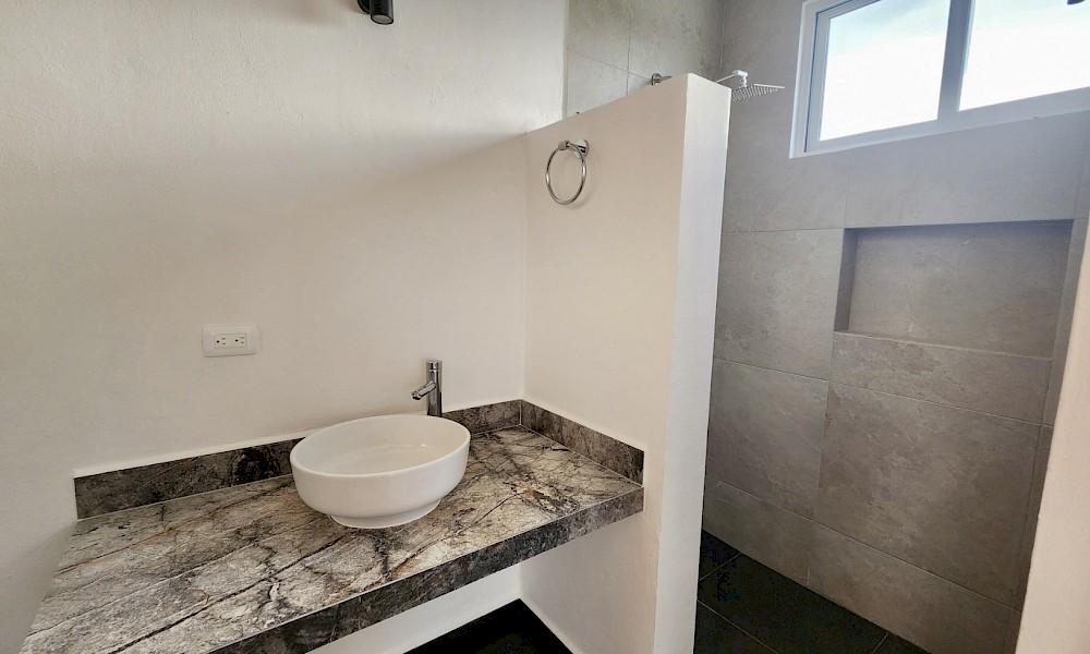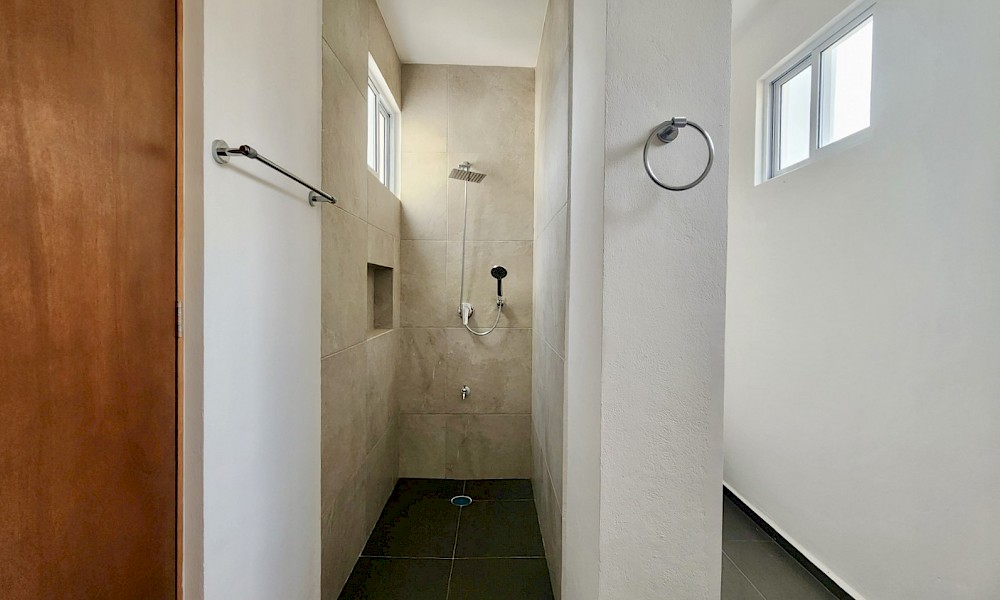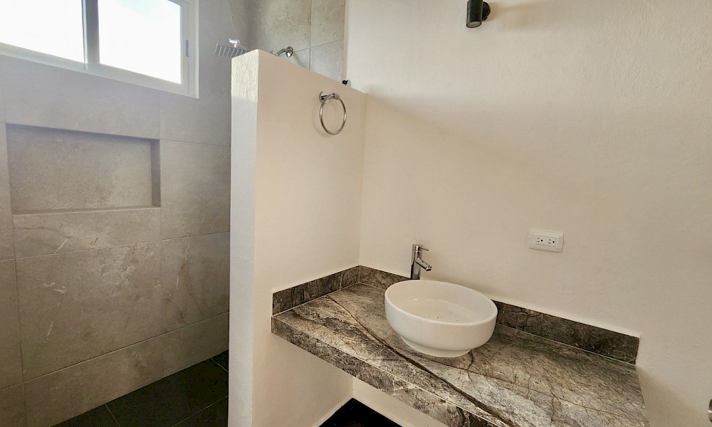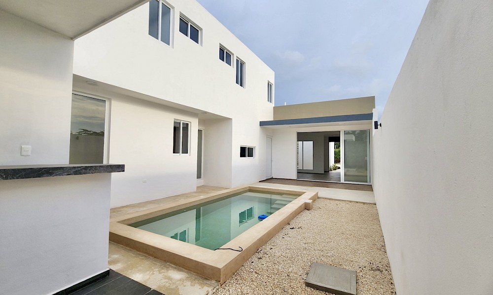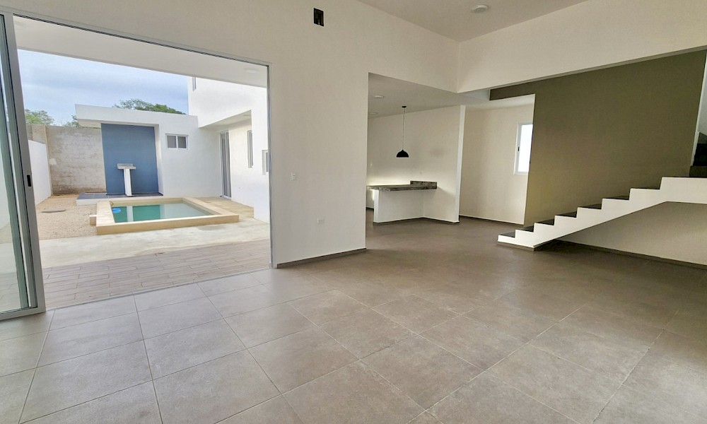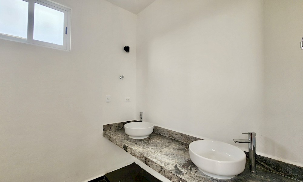 Esta residencia se caracteriza por sus tres amplias habitaciones, la recámara principal en planta baja.