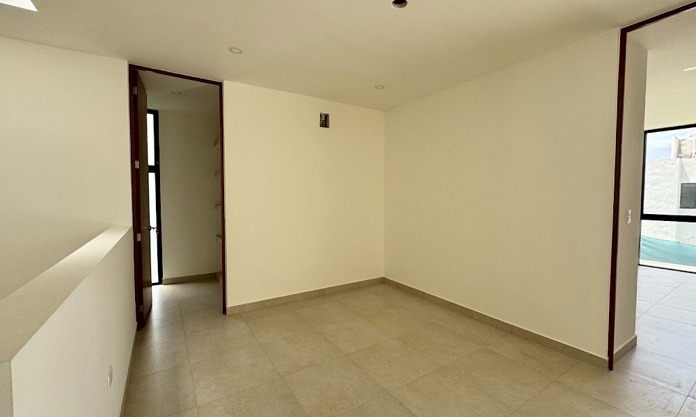 Este modelo se caracteriza por contar con cuatro amplias habitaciones, una de ellas en planta baja para mayor comodidad.