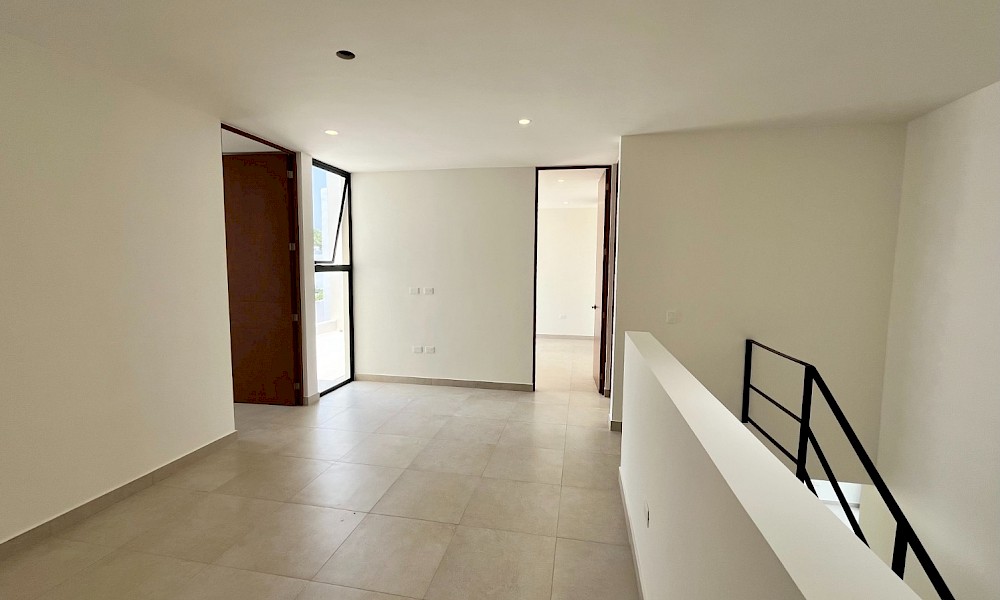 Este modelo se caracteriza por contar con cuatro amplias habitaciones, una de ellas en planta baja para mayor comodidad.