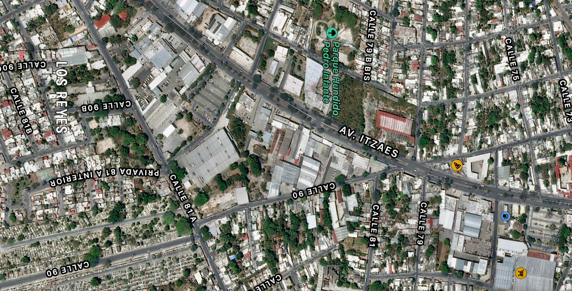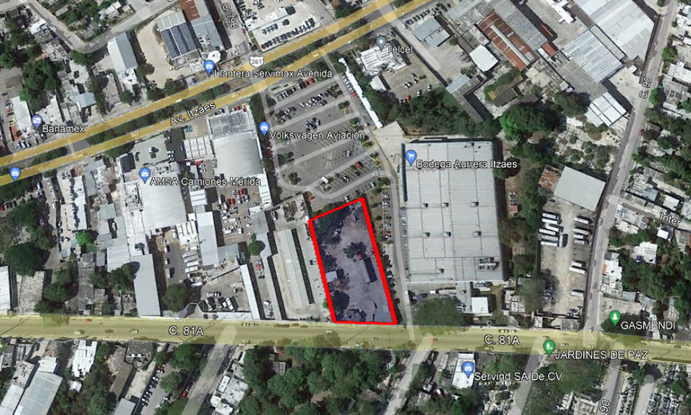 Terreno en venta sobre Avenida Aviación, ubicado a solo 3km del Aeropuerto Internacional de Mérida y colindando con otros negocios comerciales.