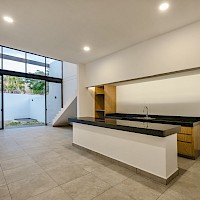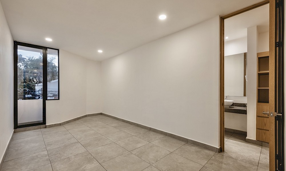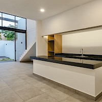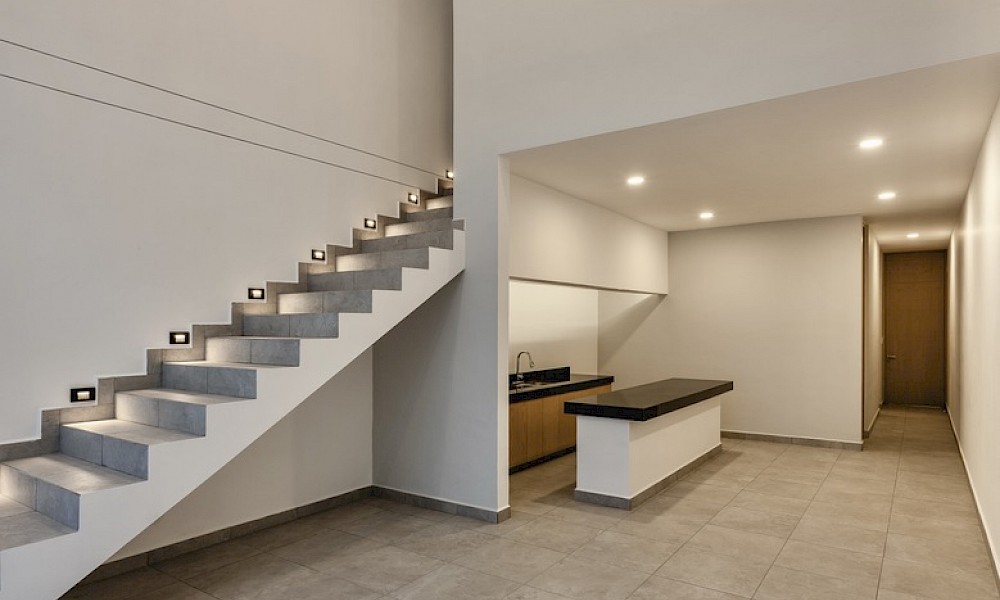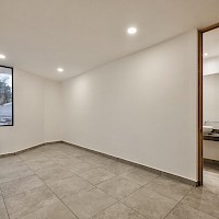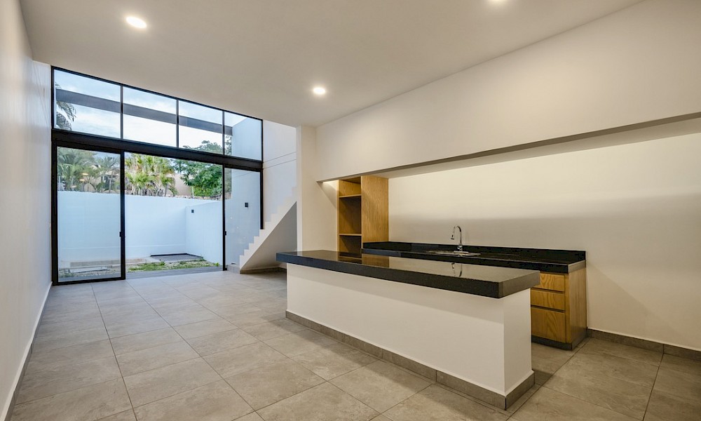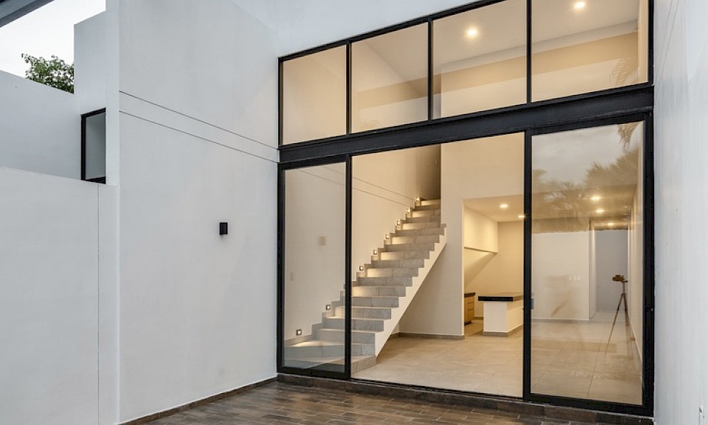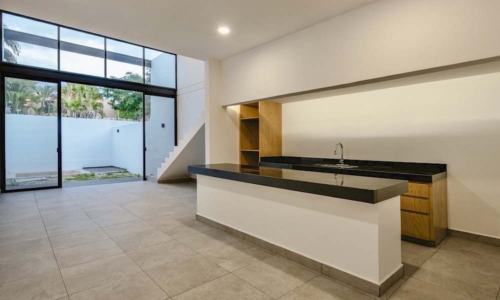 La propiedad se caracteriza por tener tres habitaciones, una de ellas en planta baja para mayor comodidad, además de una sala a doble altura.