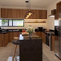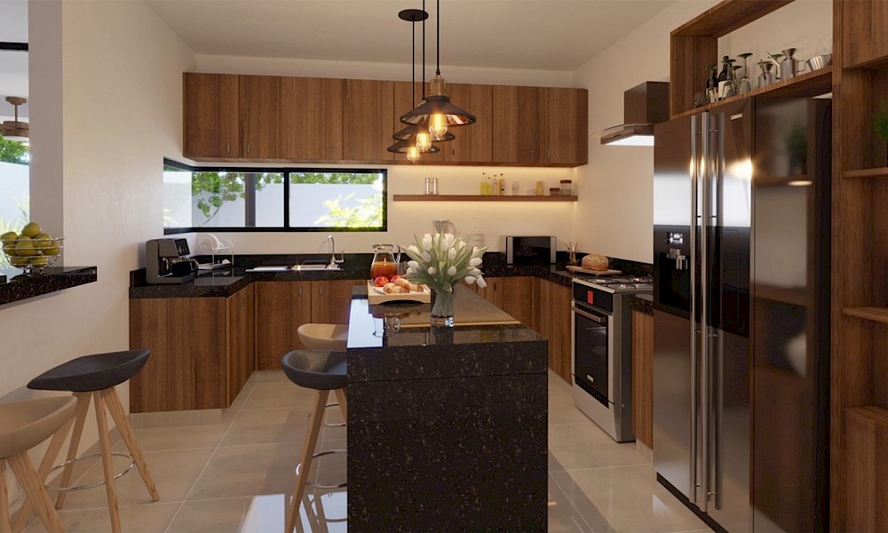 - Cocina con barra desayunadora