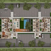 Monné está conformado de dos torres con 76 departamentos en total divididos en 6 niveles con amenidades que dividen ambos lados.