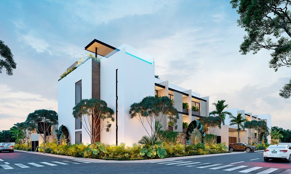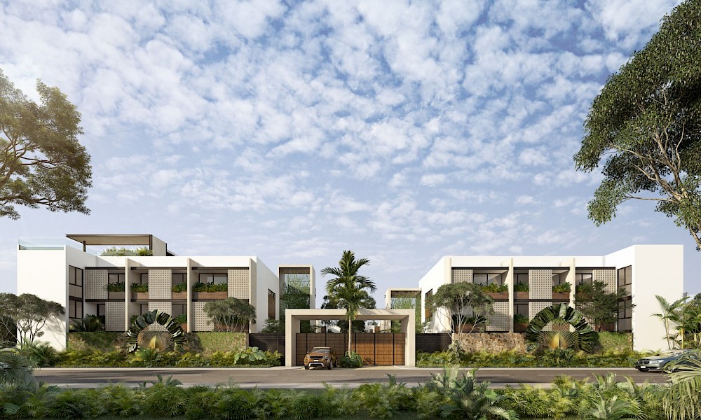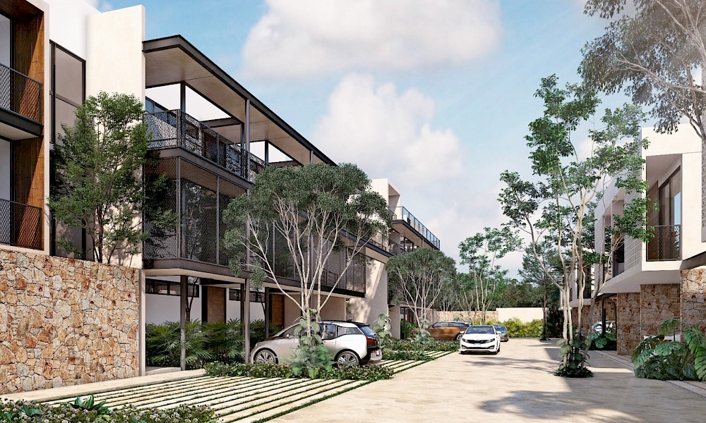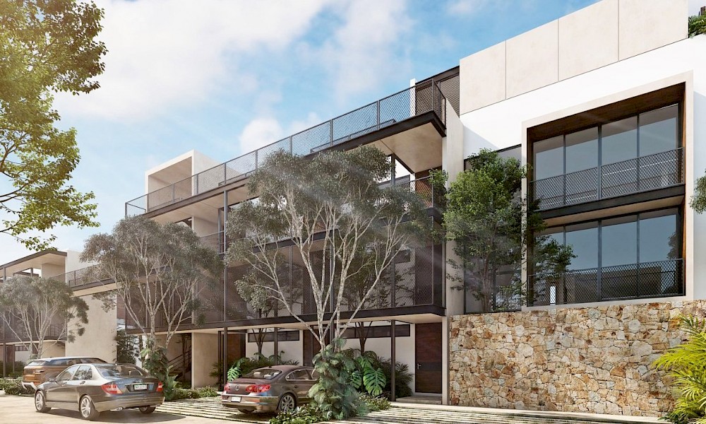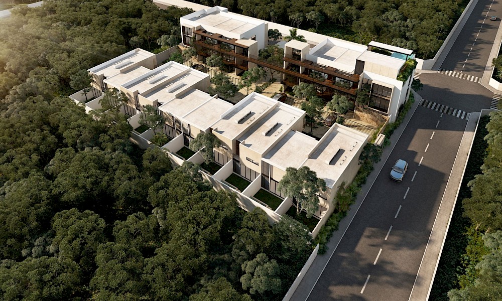 Conformado de 18 departamentos y 10 townhouses en un área con 33% de vegetación sobre huella de terreno, logrando así brindarnos espacios más frescos y un contacto directo con la naturaleza sin salir de la ciudad.