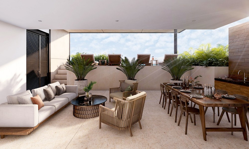 La privada contará con un área de rooftop y terraza con una infinity pool como parte de las variadas amenidades que ofrece. Además los residentes contarán con acceso por portón eléctrico, cámaras de seguridad y cerco eléctrico.