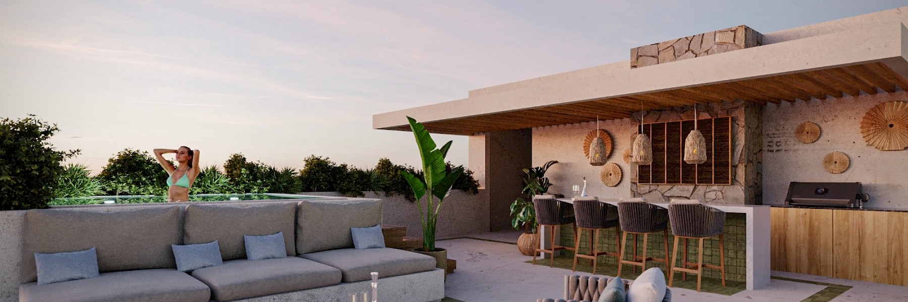 Conformado por 53 departamentos, Soha es un desarrollo diseñado con amenidades como piscina, sala de juntas y rooftop.