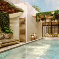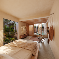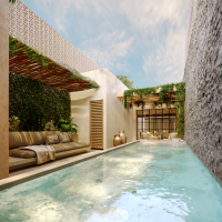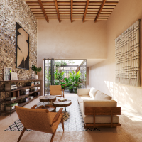 Esta propiedad se caracteriza por el diseño arquitectónico diferente, en donde destaca la sencillez convertida en elegancia, además que está distribuida en una sola planta y cuenta con 2 habitaciones con vista hacia el área social.