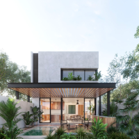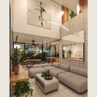 Este modelo nos brinda una doble altura en el área de la sala, una terraza ideal para disfrutar de las tardes y una habitación en planta baja para mayor comodidad.