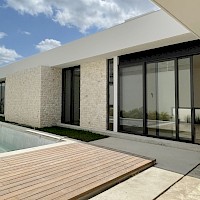 Este modelo se caracteriza por tener su distribución en una sola planta y contar con una cochera para 4 vehículos.