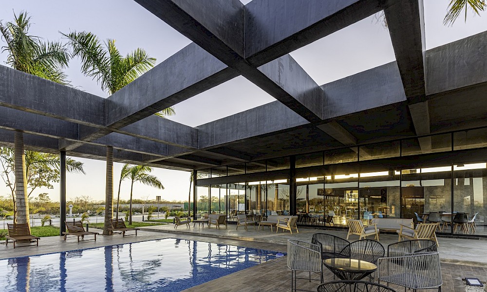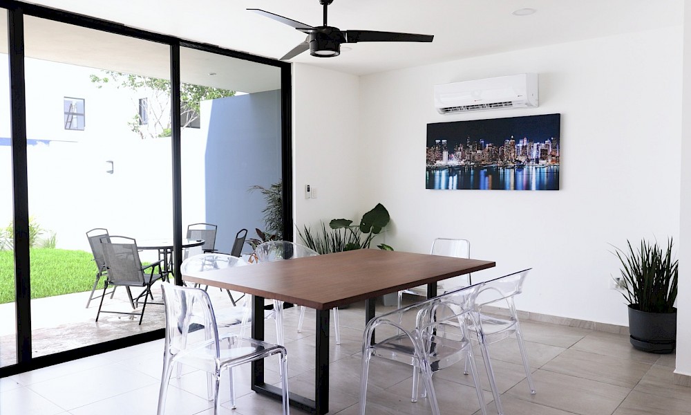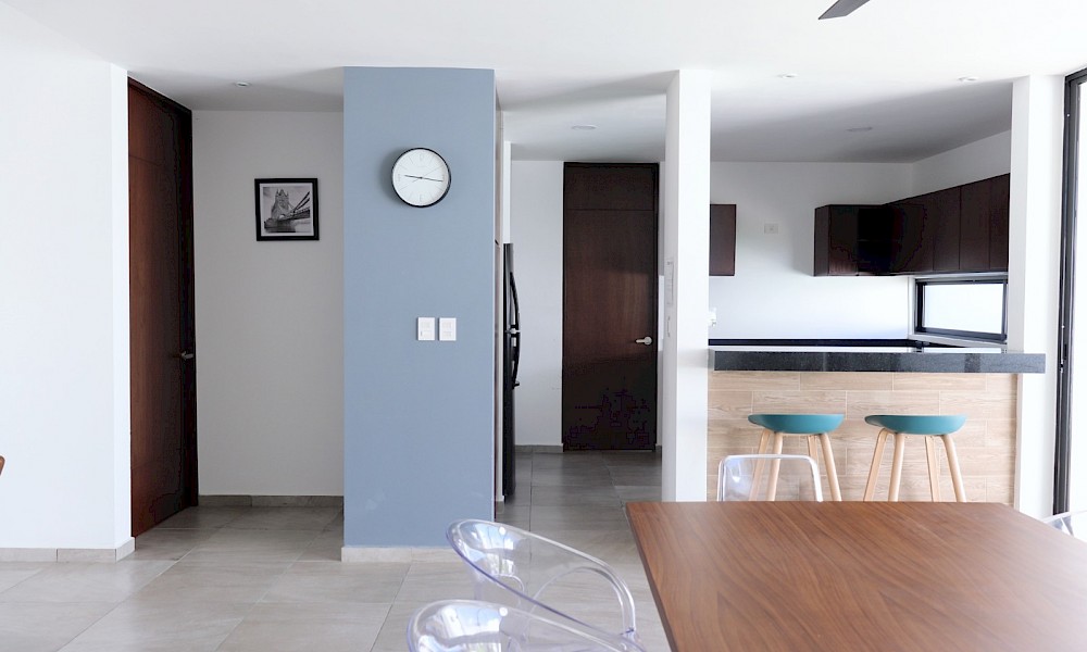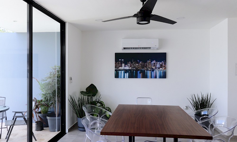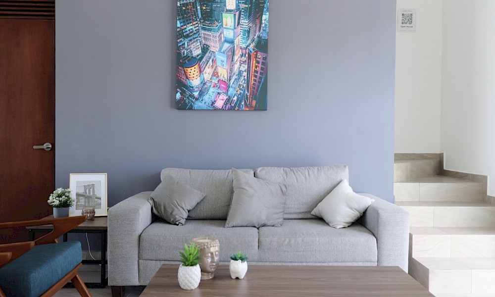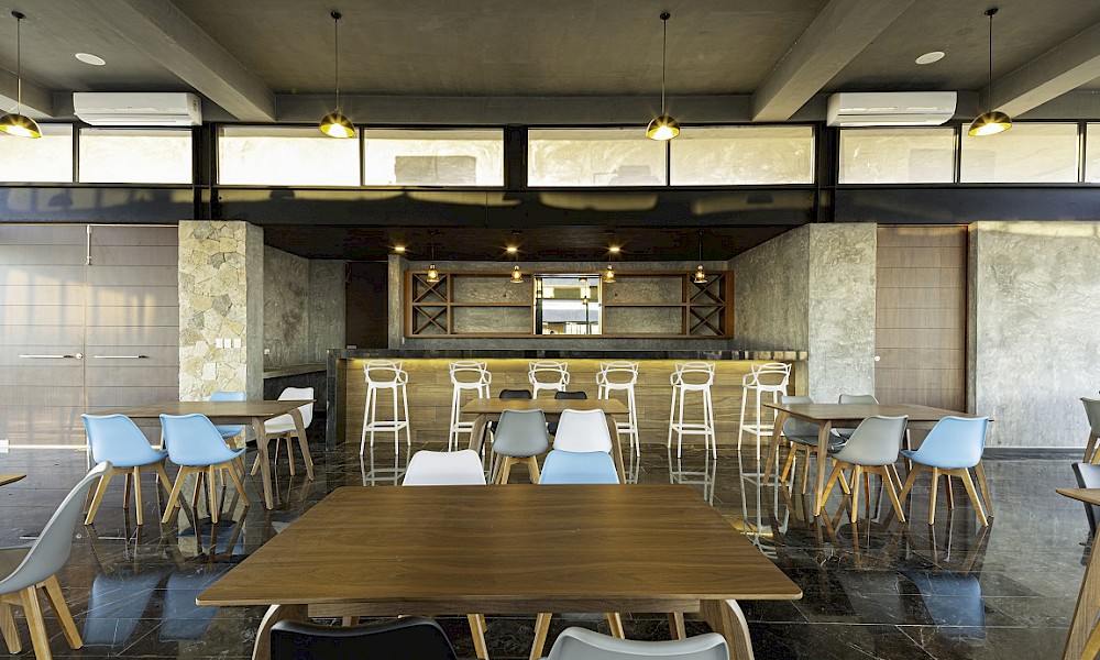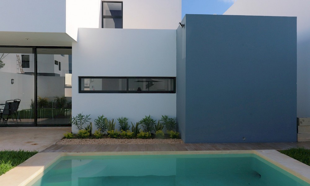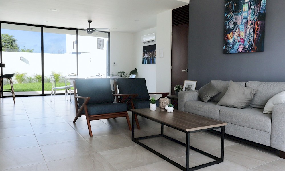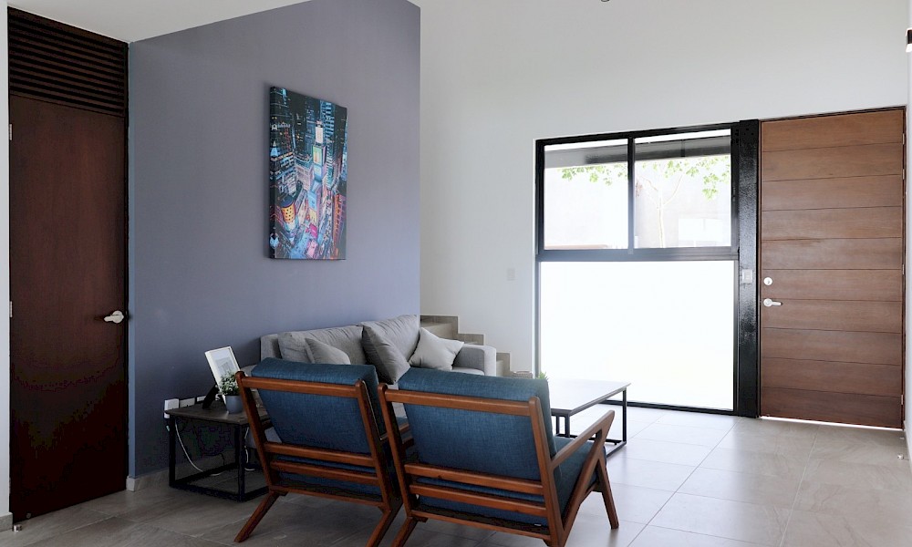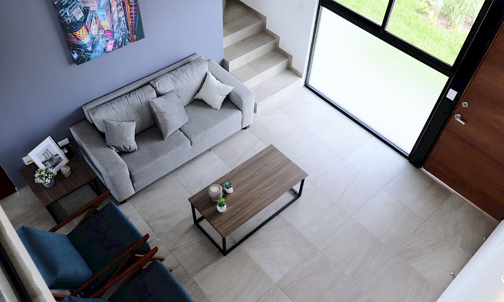 La residencia se caracteriza por tener la sala a doble altura dando la ventaja de iluminación y ventilación natural.
