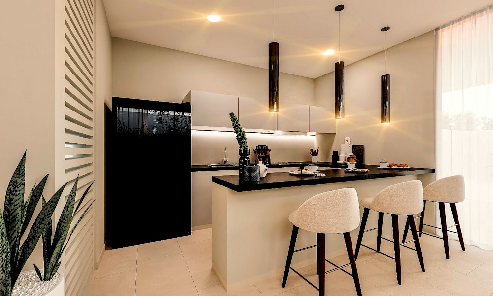 - Cocina con barra desayunadora