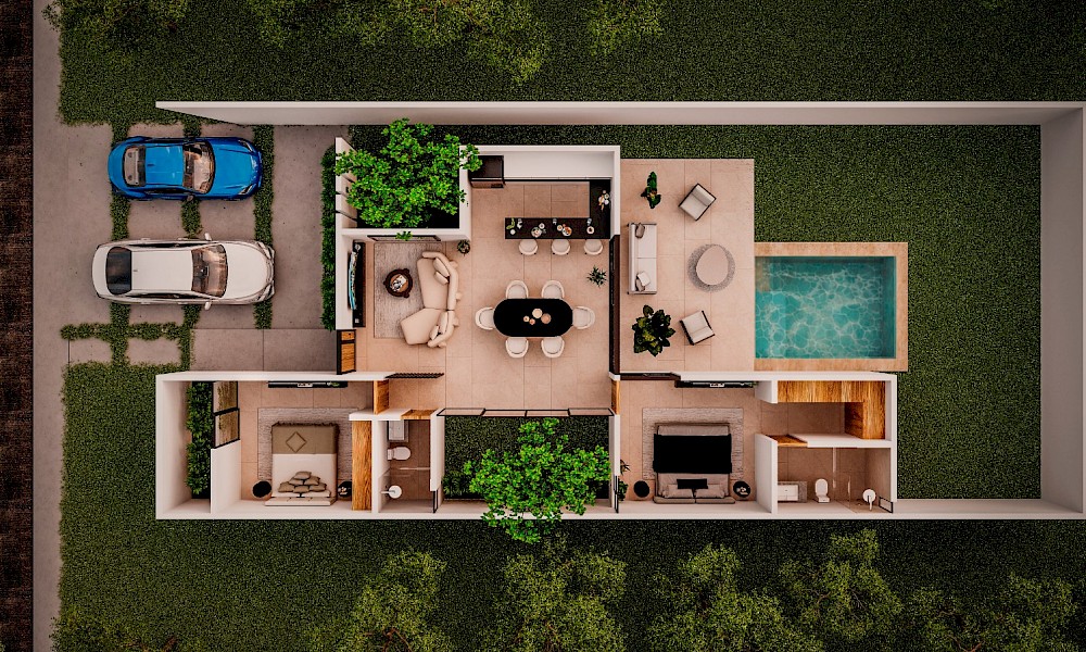 - Estacionamiento no techado Capacidad 2 vehículos