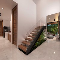 Las residencias se caracterizan por sus espacios bien aprovechados con tres amplias habitaciones y una vista panorámica hacia el jardín desde la sala-comedor.
