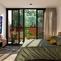 El modelo Vista se encuentra exclusivamente en el primer nivel, cuenta con dos amplias habitaciones y un balcón.