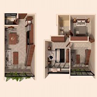 Este prototitpo se caracteriza por tener estar distribuido en dos plantas, tener una dos habitaciones y doble altura en el área de la sala.