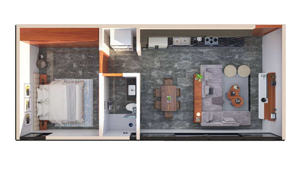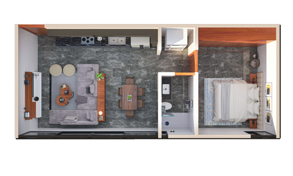 El desarrollo consta de tan solo 16 exclusivos departamentos con equipamiento. Este modelo se caracteriza por contar con 1 recámara y estar en el segundo y tercer piso de la torre.