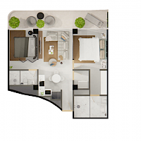 Este modelo se caracteriza por estar compuesto por 2 habitaciones y 2 baños, y contar con vistas panorámicas hacia el amanecer.