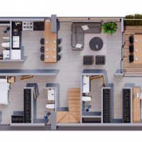 Este departamento se caracteriza por tener un rooftop con cuarta habitación, área social, bar y piscina.
