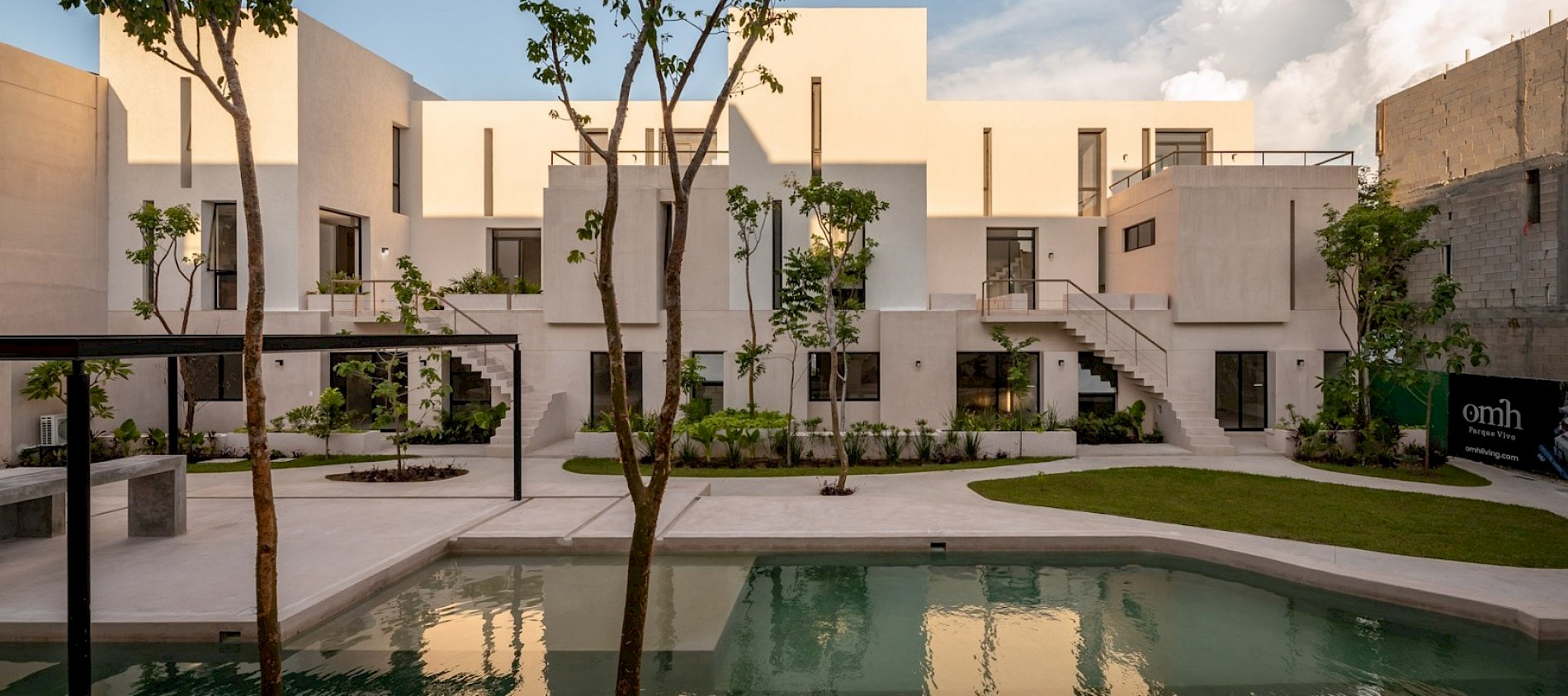 Departamento en preventa en OMH, ubicado en la zona de Temozón, al norte de Mérida; cerca de plazas comerciales como City Center, de hospitales, colegios de prestigio y las mejores áreas de entretenimiento. OMH es una privada residencial conformada por 48 departamentos distribuidos en 12 torres con 4 modelos diferentes. Esta segunda etapa se entrega en diciembre.